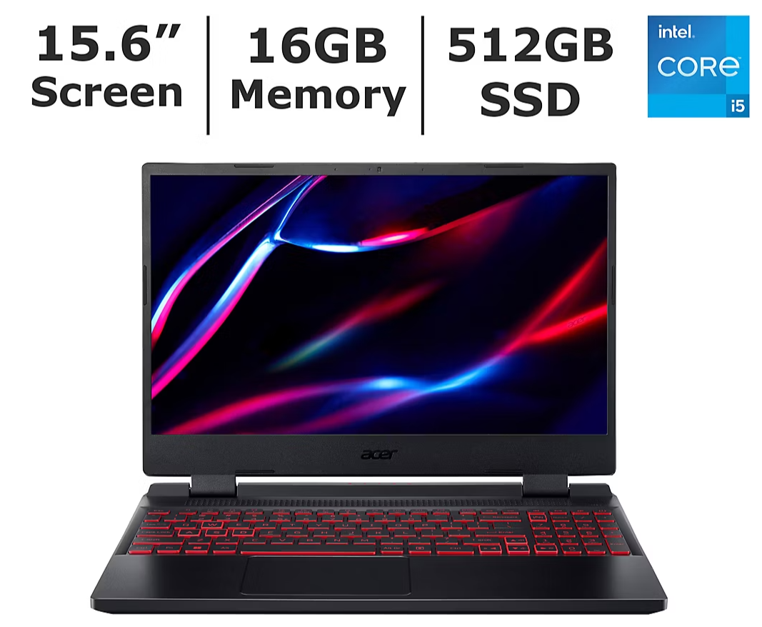 Acer Nitro 5 AN515-58-56CH 15.6" FHD IPS 144Hz Display, Gaming Laptop, Intel Core i5-12500H Processor, 16GB DDR5 RAM 512GB PCIe Gen 4 SSD; Nvidia GeForce RTX 4050