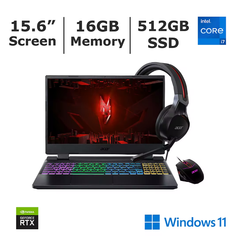 Includes: Laptop, Hard Drive Upgrade Kit, AC Adapter, Power Cord, Nitro Gaming Headset, Nitro Gaming Mouse