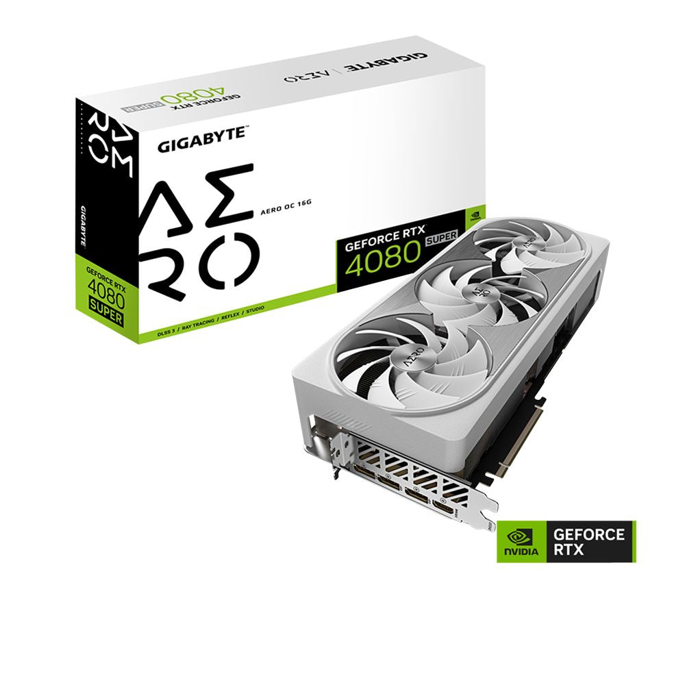 Ahead of its time, ahead of the game is the GIGABYTE GeForce RTX 4080 SUPER AERO OC 16G Graphics Cards. Powered by NVIDIA's new RTX architecture, the GeForce RTX 4080 SUPER AERO OC 16G brings stunning visuals, amazingly fast frame rates, and AI acceleration to games and creative applications with its enhanced RT Cores and Tensor Cores, along with a staggering 16 GB of GDDR6X memory.