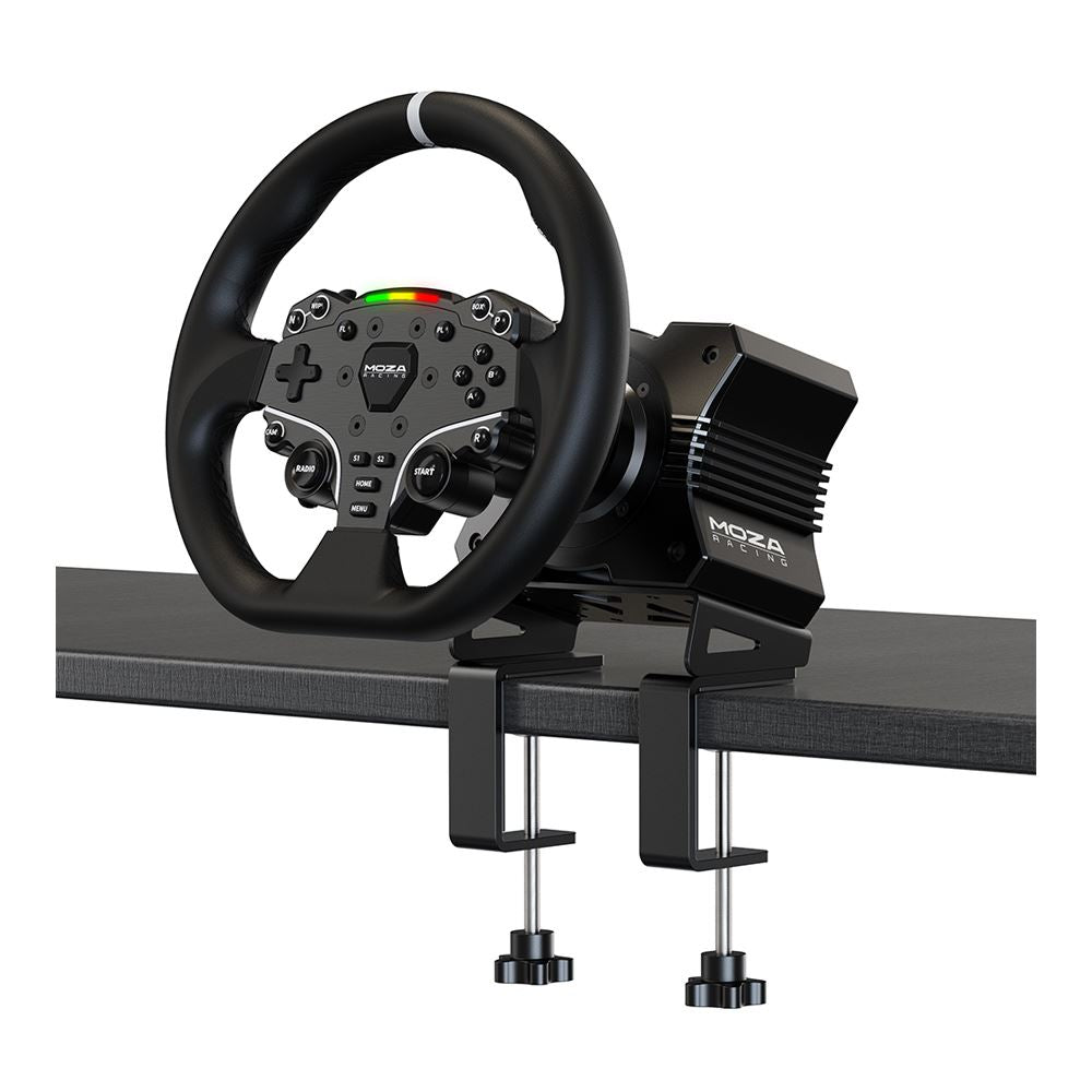 The MOZA R5 isn't just about raw power; it's about tailoring your racing setup to your unique driving style. The included MOZA APP allows you to fine-tune every aspect of your racing environment. Adjust the sensitivity of the wheelbase, customize the steering wheel settings, or calibrate your pedals to match your preference for how your car responds. The bundle even comes with an optional R5 table clamp, making it easy to mount to any table or desk, ensuring that your setup is not only robust but also flexible to your space constraints. With materials like high-strength steel, the MOZA R5 bundle isn't just durable; it's engineered for performance, ensuring your racing gear withstands the test of time and intensity.